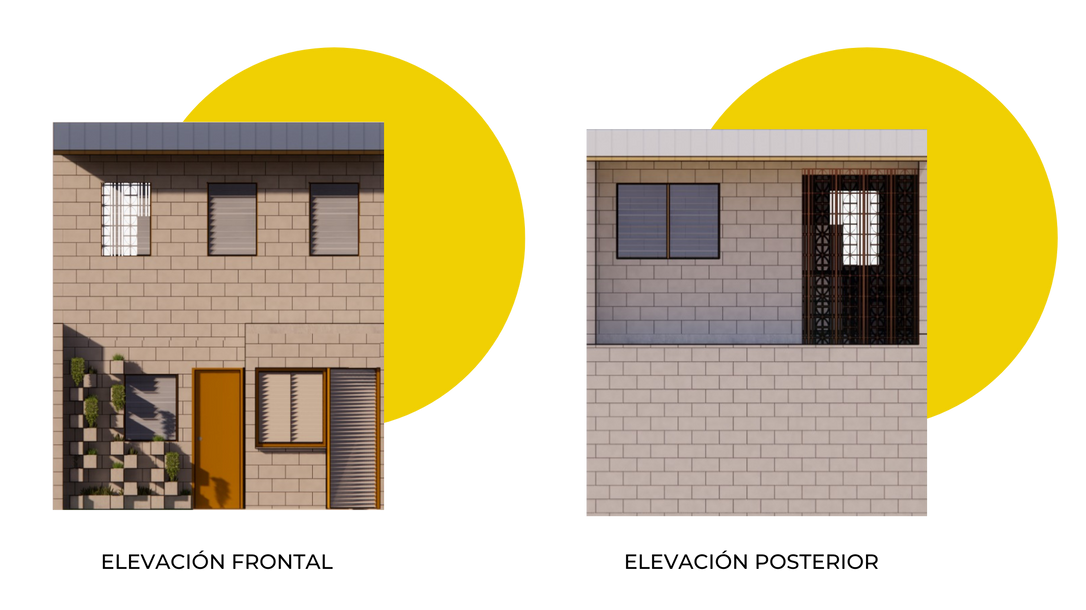 Esta vivienda estudio las necesidades en la zona y busca brindarle herramientas a los habitantes para poder desarrollarse, cuenta con un huerto vertical, espacio adaptable para emprender y confort en los materiales de construccion.